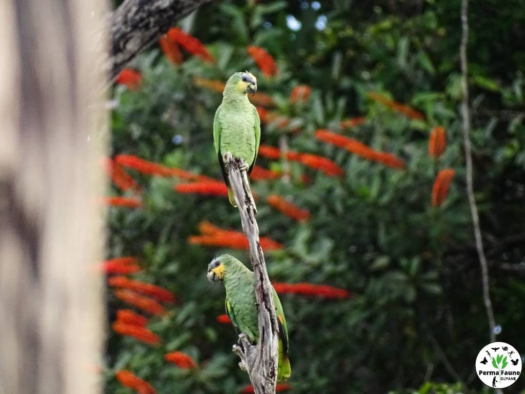Illustration photo : Couple d’Amazone aourou -des oiseaux monogames qui se déplacent toujours en couple -Amazona amazonica – Guyane Française- France – Février 2022
