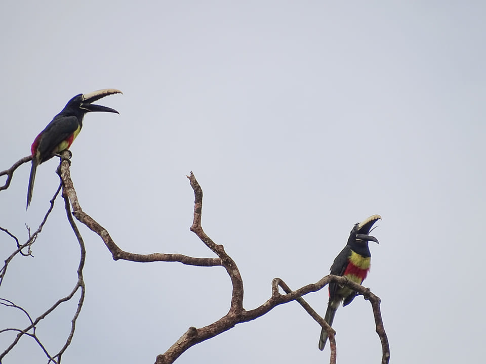 L’Araçari grigri qui vient nourrir son petit ! Pourquoi devrait-on être extrêmement prudent quand on observe un nid d’oiseau? Car un oiseau…