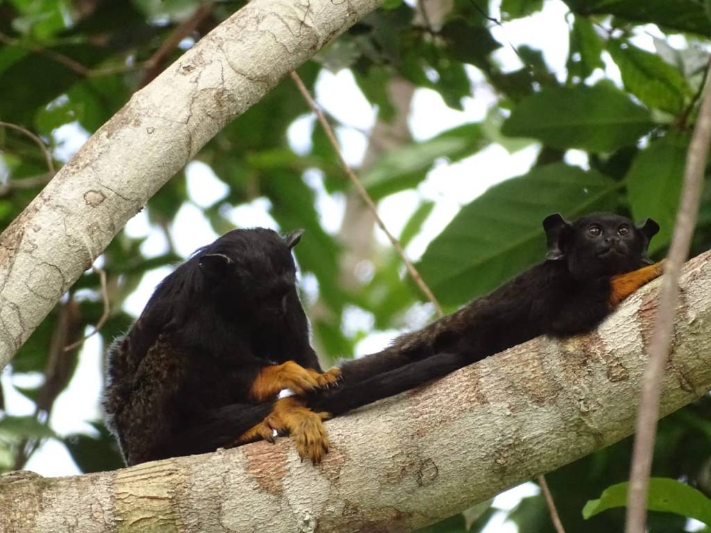 Au cœur de la Montagne des singes, nous avons aujourd’hui observé au même moment un Harpage bidenté au milieu d’un groupe de Tamarin aux mains jaunes ! 🦅🐒