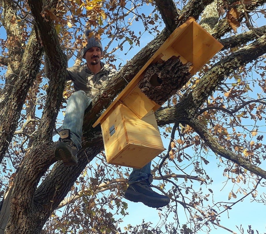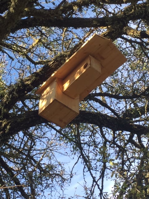 – Pose de nichoirs pour pallier au manque de cavités naturelles, en attendant la présence de vieux arbres à cavités